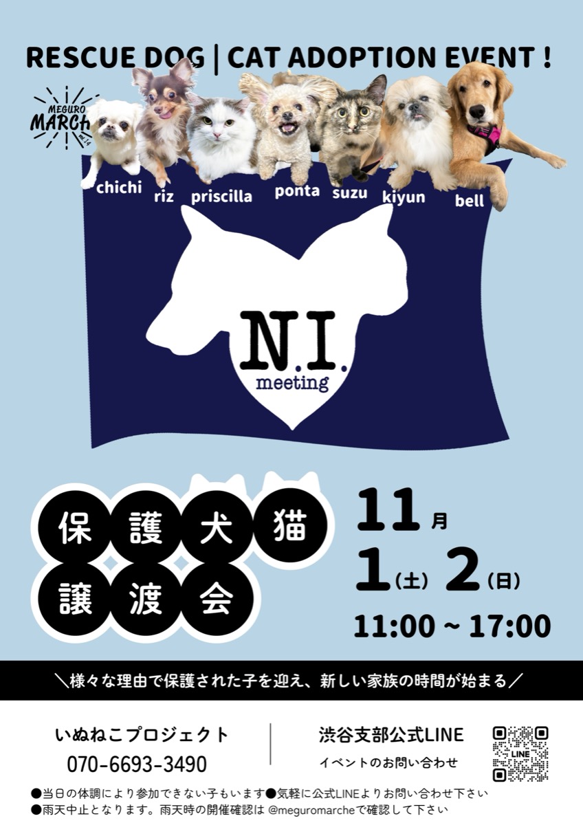 目黒マルシェで保護犬・保護猫譲渡会「N.I.meeting」開催のお知らせ