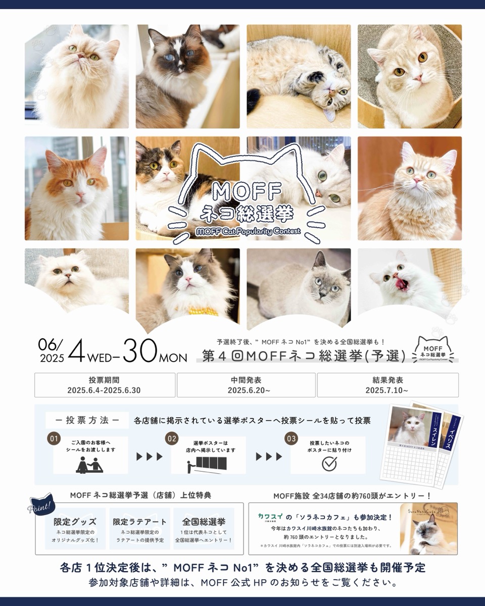 - MOFFネコ総選挙:全国のMOFF猫の中からお気に入りを投票して“推し猫No.1”を決める人気企画。