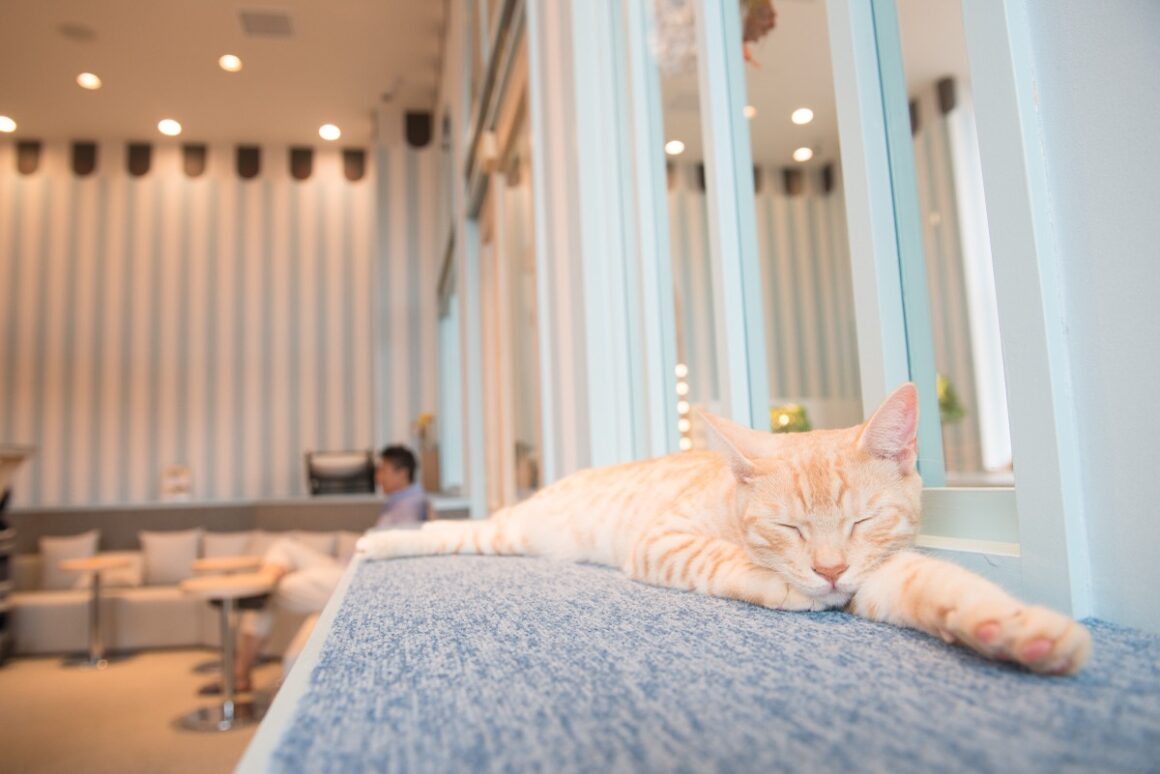 A. 店舗ごとに在籍している猫の数は異なりますが、複数の猫が店内で自由に過ごしています。時間帯によっては寝ている猫が多いこともあるため、たくさん触れ合いたい場合は猫が活発になりやすい時間を狙うのがおすすめです。