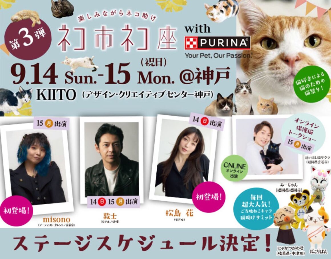 【モデル・アーティスト・YouTuberなど猫愛あふれる出演者が集結!】 2025年9月14日(日)・15日(月・祝)の2日間、神戸市・デザイン・クリエイティブセンター神戸(KIITO)にて、日本最大級の保護猫チャリティイベント「ネコ市ネコ座@神戸 with ピュリ... -